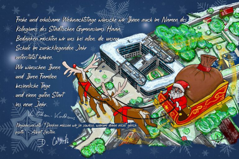 Liebe Eltern, liebe Kolleginnen und Kollegen, liebe Schülerinnen und Schüler des Städtischen Gymnasiums Haan, Sie und euch möchte ich über aktuelle Entwicklungen, Neuerungen, Änderungen etc. vor Beginn der Weihnachtsferien informieren. Zum Schulbrief